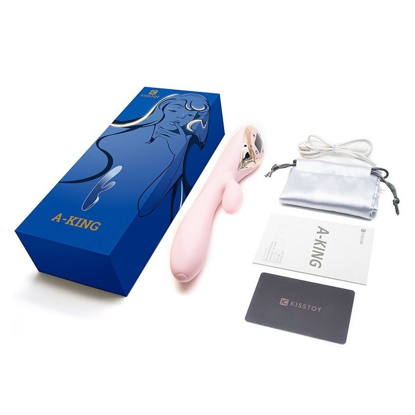 Купить Нежно-розовый вибромассажер-кролик A-King - 22,6 см. Kiss Toy по лучшей цене с доставкой - секс-шоп Ynunu.ru