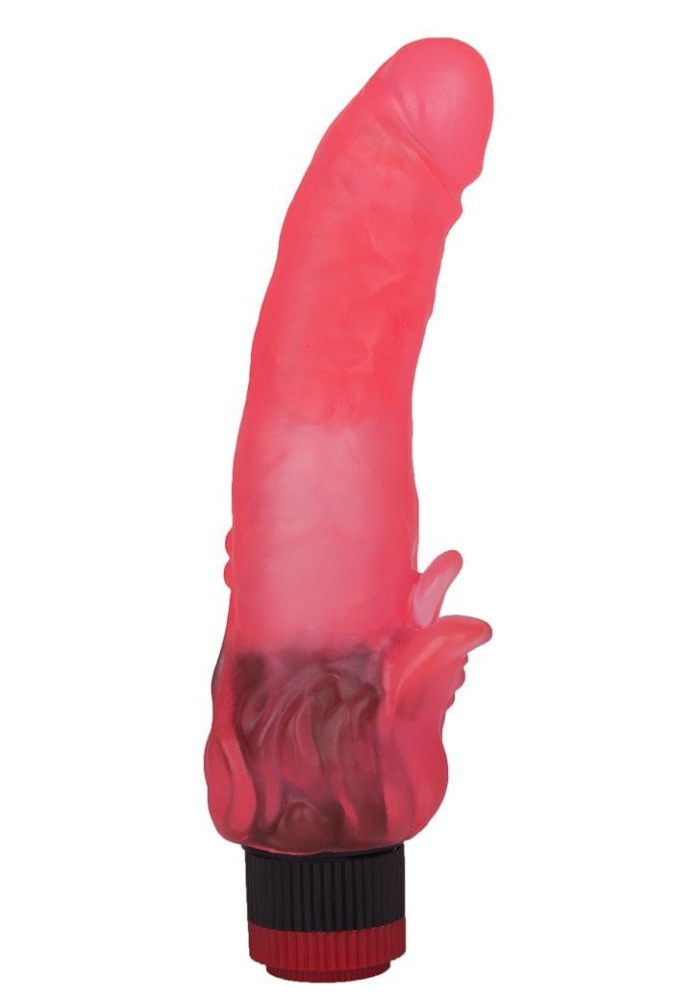 Розовый гелевый вибратор с клиторальными лепестками - 22 см.