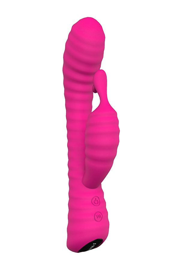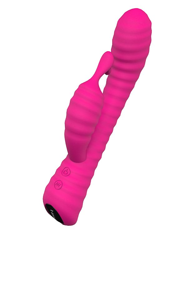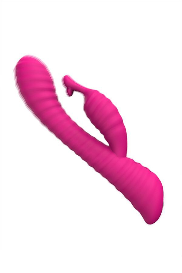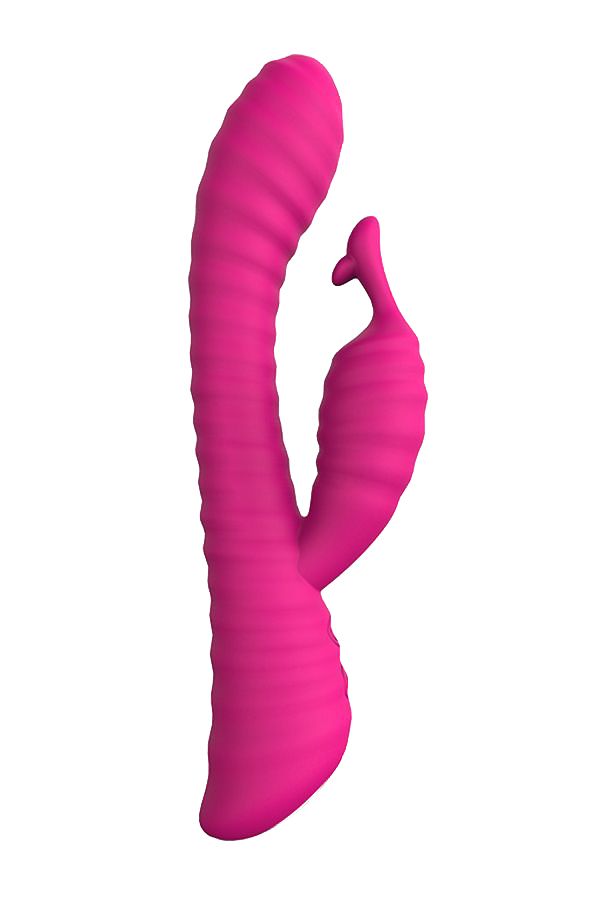 Розовый ребристый вибратор с клиторальным стимулятором S-HANDE Moonlight. 9 режимов вибрации. Перезаряжаемый.