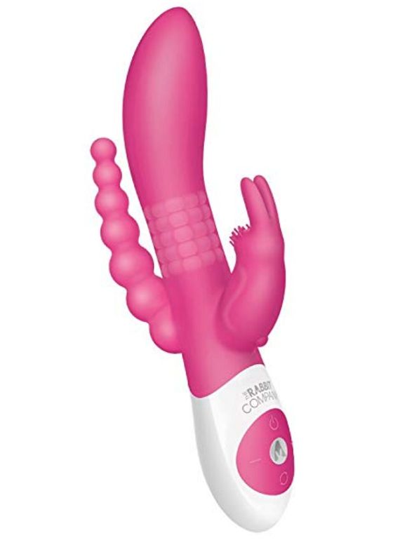 Купить Розовый вибратор-кролик с анальным отростком The Beaded D.P.Rabbit The Rabbit Company по лучшей цене с доставкой - секс-шоп Ynunu.ru