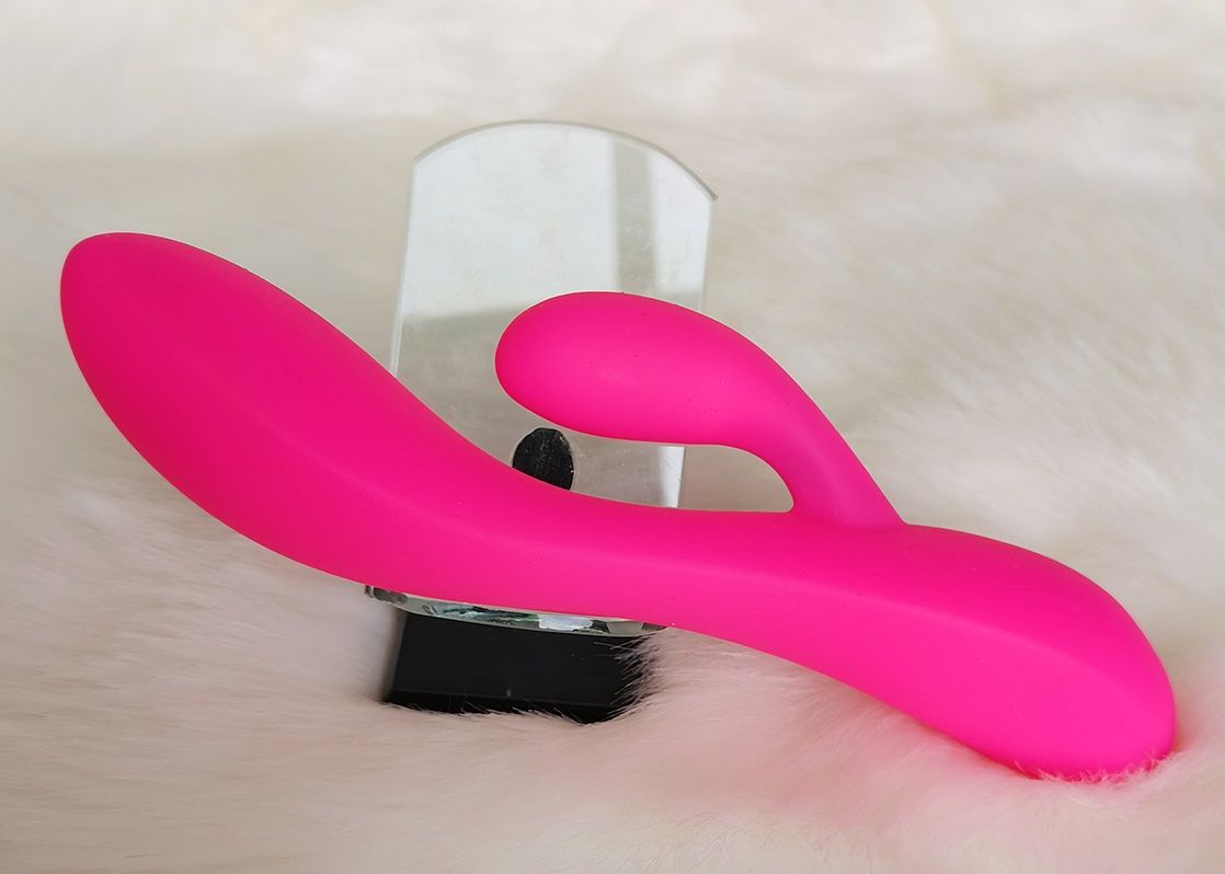 Купить Ярко-розовый вибромассажер-кролик с двумя моторами - 19,5 см. Aisnn по лучшей цене с доставкой - секс-шоп Ynunu.ru