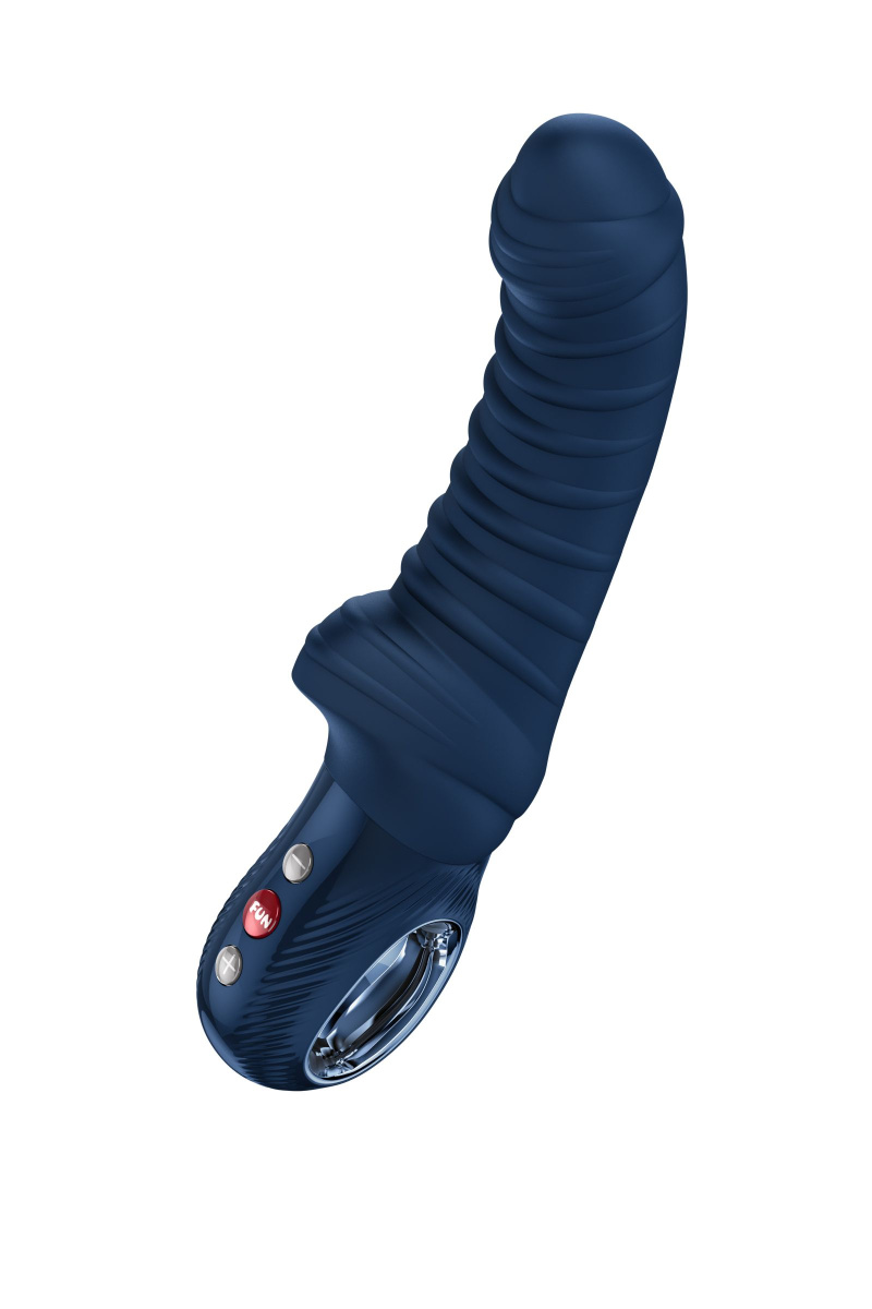 Купить Синий вибратор Tiger с ребрышками - 22,5 см. Fun Factory по лучшей цене с доставкой - секс-шоп Ynunu.ru