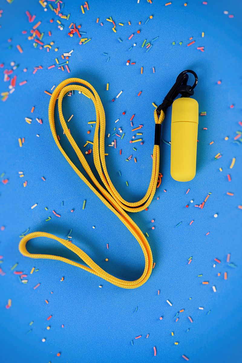Желтая вибропуля на ремешке - 5,5 см.