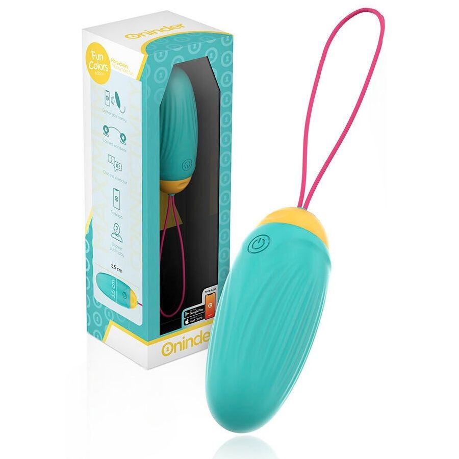 Купить Бирюзовое виброяйцо с ротацией и управлением через приложение Oninder по лучшей цене с доставкой - секс-шоп Ynunu.ru
