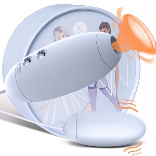 Нежно-голубое виброяйцо с вакуум-волновым пультом Kiss Toy Miss VV