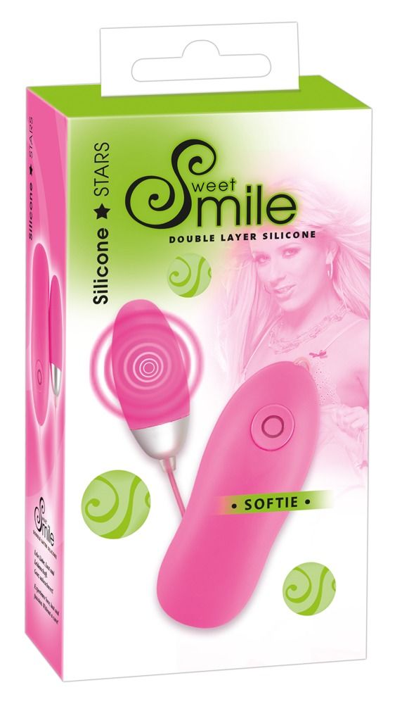 Розовое виброяичко Softie с проводным пультом управления. Выполнено из бархатистого на ощупь силикона.