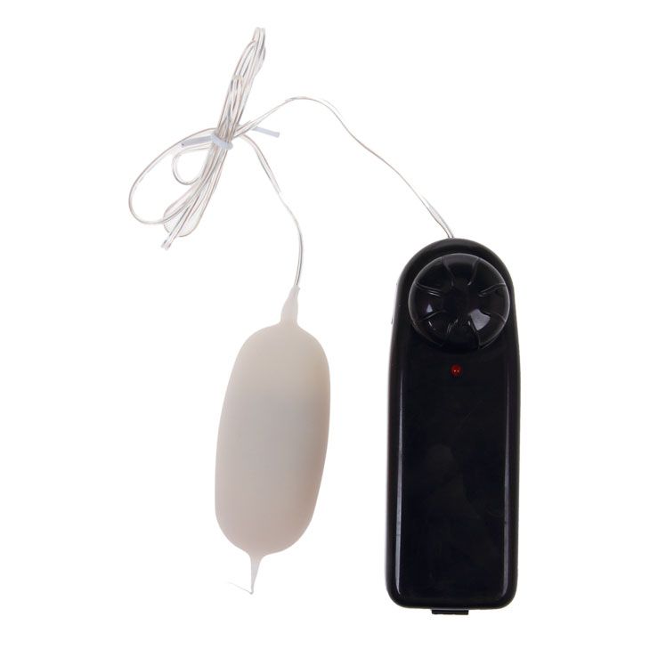 Виброяйцо с маленьким хвостиком и выносным пультом управления. Мультискоростная вибрация управляется поворотом колёсика на пульте.